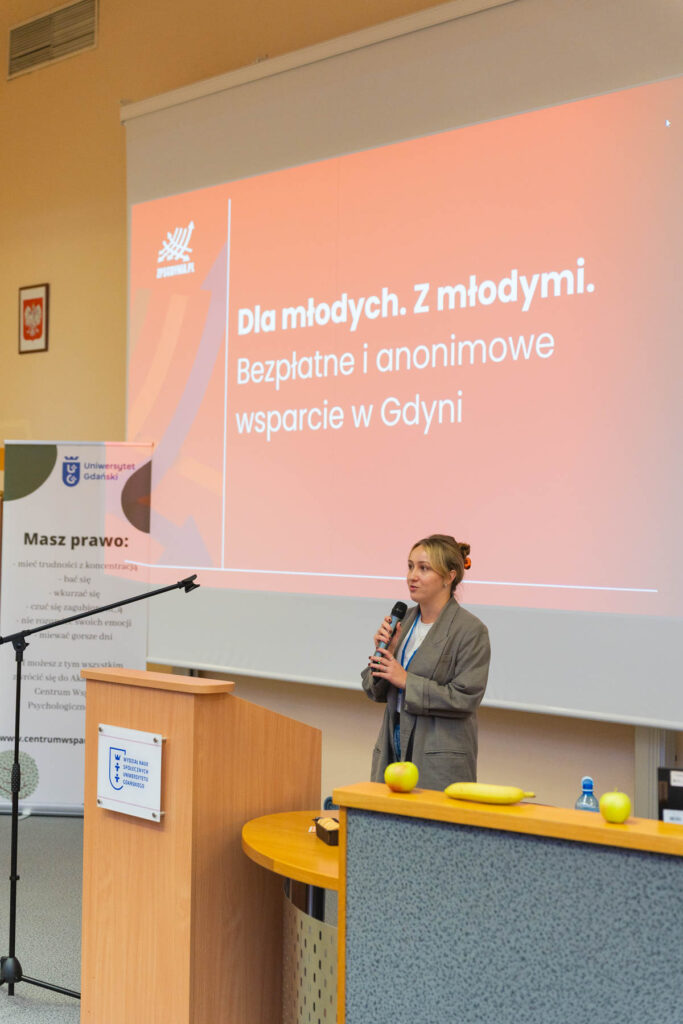 Konferencję otworzyli Piotr Harhaj ze Stowarzyszenia Na Drodze Ekspresji, Prorektor ds. studenckich dr hab. Urszula Patocka-Sigłowy, prof. UG oraz Prodziekan ds. studenckich dr Dominik Bień, którzy podkreślili, jak ważne jest tworzenie przestrzeni, w której każdy – niezależnie od roli czy doświadczenia – może mówić o trudnościach i szukać pomocy.