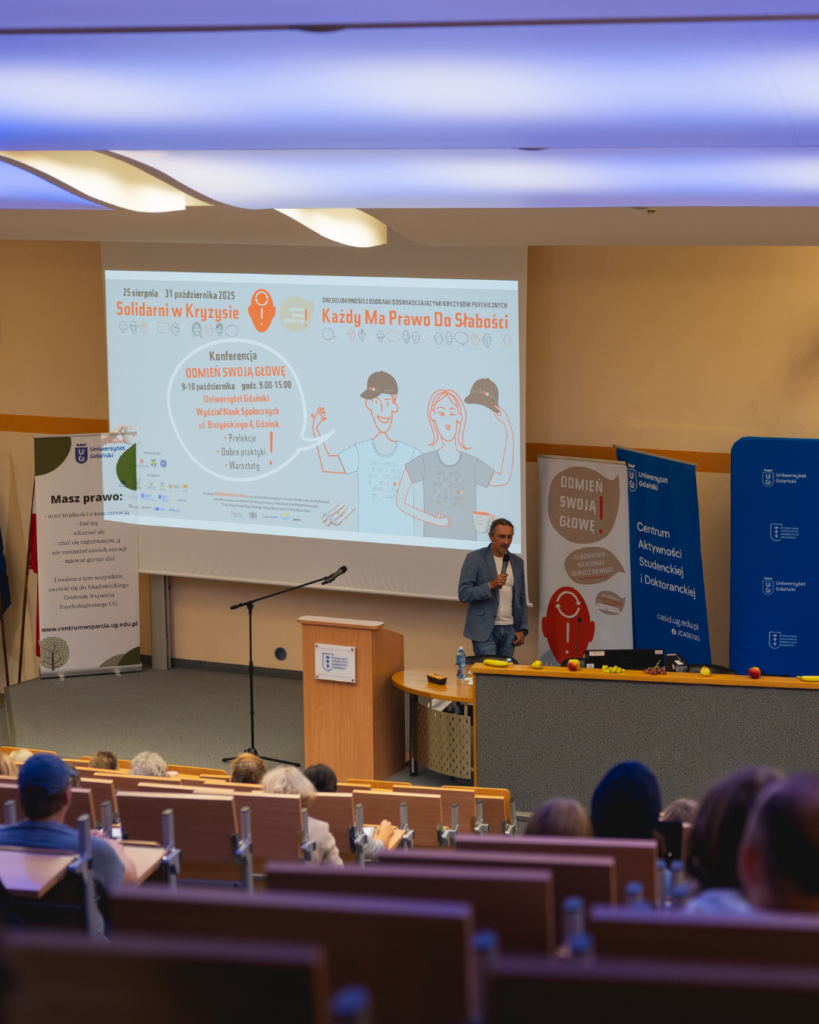 W dniach 9–10 października 2025 roku na Wydziale Nauk Społecznych Uniwersytetu Gdańskiego odbyła się konferencja „Solidarni w kryzysie. Każdy ma prawo do słabości”, zorganizowana w ramach kampanii społecznej Odmień Swoją Głowę.