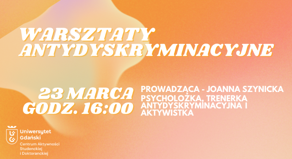 Już 23 marca o godzinie 16:00 odbędą się warsztaty antydyskryminacyjne prowadzone przez psycholożkę, trenerkę antydyskryminacyjną i aktywistkę Joannę Szynicką z trójmiejskiej grupy lokalnej Amnesty International. Wspólnie przyjrzymy się mechanizmom i przejawom dyskryminacji ze względu na płeć, pogłębimy wiedzę o strategiach wspierających równość i różnorodność, a także zastanowimy się nad wpływem uprzedzeń i stereotypów na nasze […]