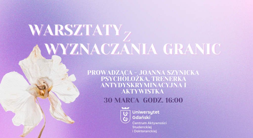 Zapraszamy 30 marca o godzinie 16:00 na warsztaty z wyznaczania granic prowadzone przez psycholożkę, trenerkę antydyskryminacyjną i aktywistkę Joannę Szynicką. Program spotkania opracowany został przez grupę psycholożek, terapeutek i edukatorek związanych z Centrum Praw Kobiet w ramach „Projekt MOC” – inicjatywie mającej na celu wzmacnianie umiejętności stawiania i egzekwowania granic w kontakcie z innymi, asertywnej […]