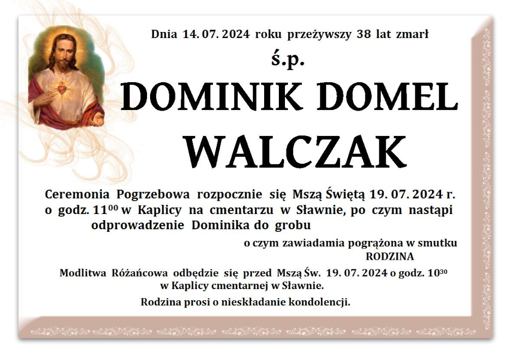 Z głębokim smutkiem zawiadamiamy o śmierci Dominika Walczaka