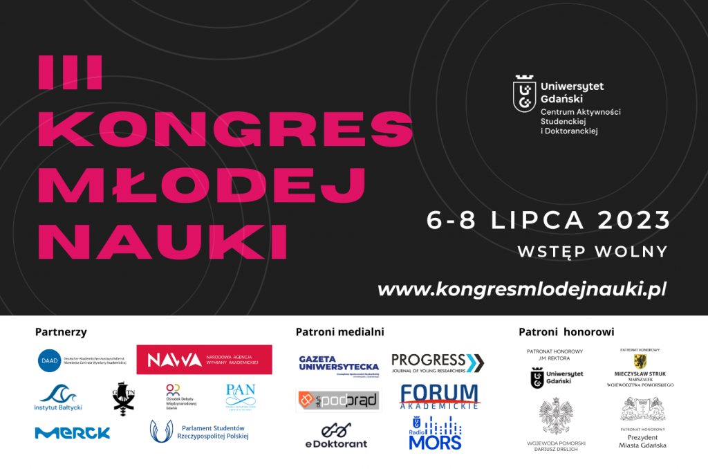 Kongres Młodej Nauki jest cykliczną międzynarodową i multidyscyplinarną konferencją naukową, która odbywa się na Uniwersytecie Gdańskim. W ramach wydarzenia, w kilkudziesięciu panelach oraz sesji posterowej, młodzi naukowcy zaprezentują wyniki swoich badań, przedyskutują swoje tezy, oraz przede wszystkim nawiążą kontakty i rozwiną się naukowo. Tematyka wystąpień w ramach konferencji nie jest ograniczona – przewidziane są wystąpienia […]