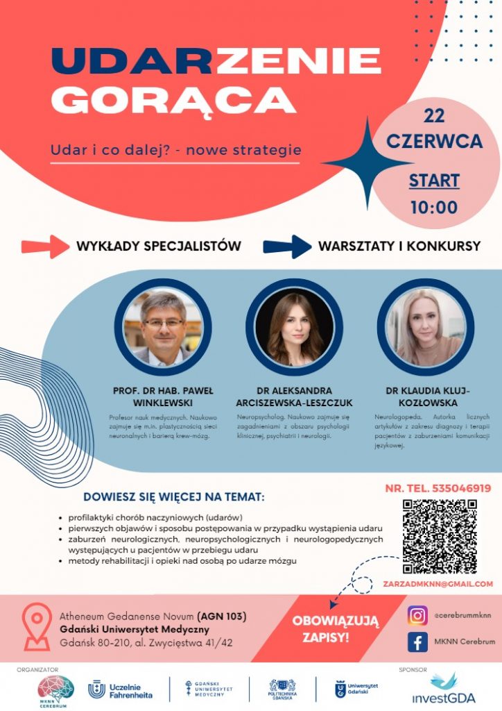 🎉💡📚W imieniu MKKN Cerberum Serdecznie zachęcamy do wzięcia udziału w wydarzeniu pt. „UDARzenie gorąca – Udar i co dalej? Nowe strategie”, które odbędzie się 22 czerwca 2024 roku. Uczestnicy będą mieli okazję dowiedzieć się więcej o pierwszych objawach udaru, metodach postępowania, a także o zaburzeniach neurologicznych, neuropsychologicznych i neurologopoedycznych oraz metodach rehabilitacji i opieki nad […]