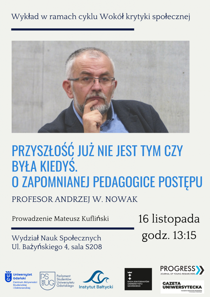Zapraszamy na pierwszy w tym roku akademickim wykład w ramach cyklu „Wokół krytyki społecznej”. Termin 16 listopada godzina 13:15, sala S208 Tym razem na Wydziale Nauk Społecznych zagości Andrzej W. Nowak, dr hab., prof. UAM z Uniwersytetu im. Adama Mickiewicza w Poznaniu, który wygłosi wykład Przyszłość już nie jest tym czy była kiedyś. O zapomnianej […]